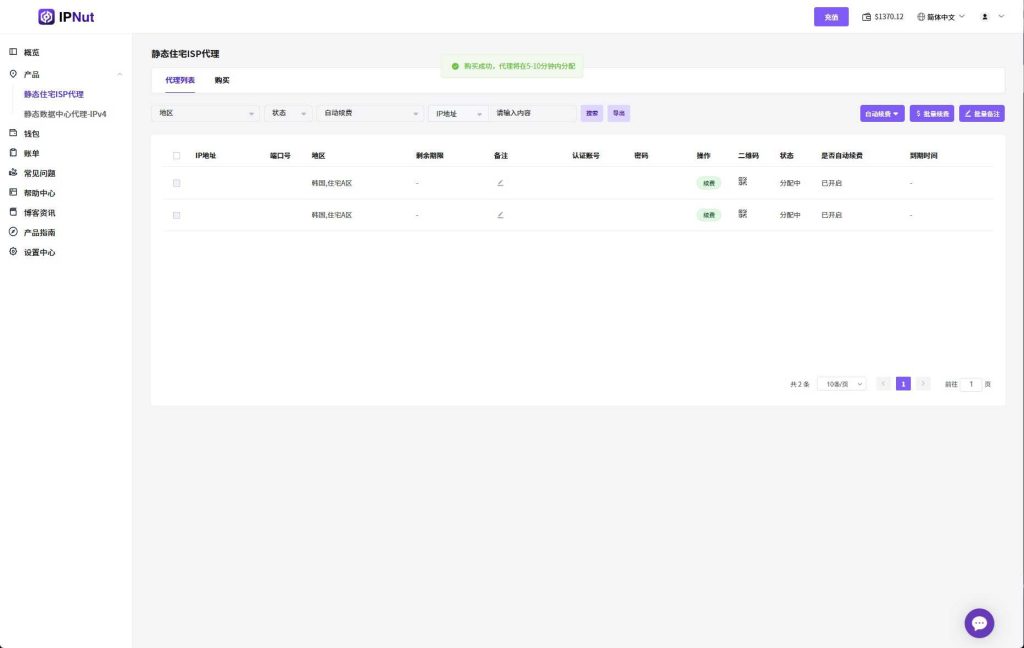 至此,订单购买完。获取代理信息可以直接拷贝分配信息或扫描对应二维码获取信息。