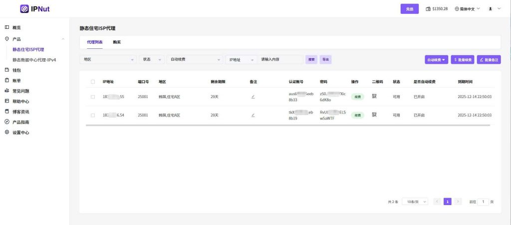 等待5-10分钟后,可以手动刷新一下列表,列表中会出现系统分配的IP信息及账号密码等信息。