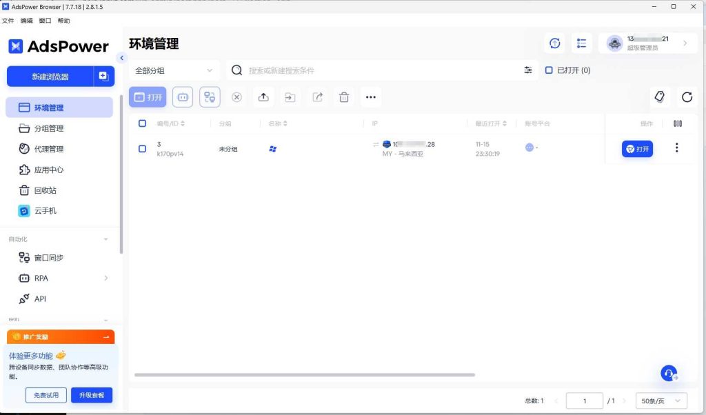 第一步,打开安装好的AdsPower浏览器。
