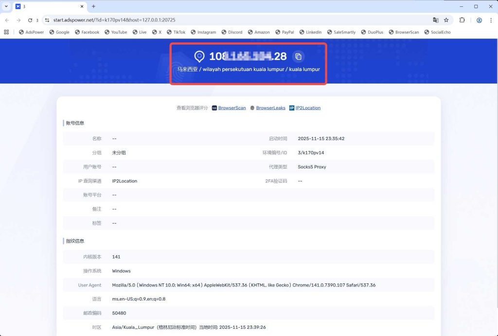 自此,AdsPower浏览器配置IPNut的代理IP网络环境已经完成了。