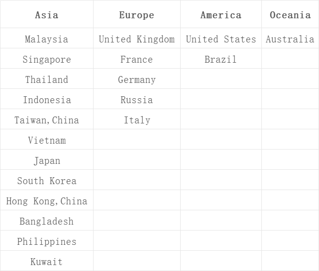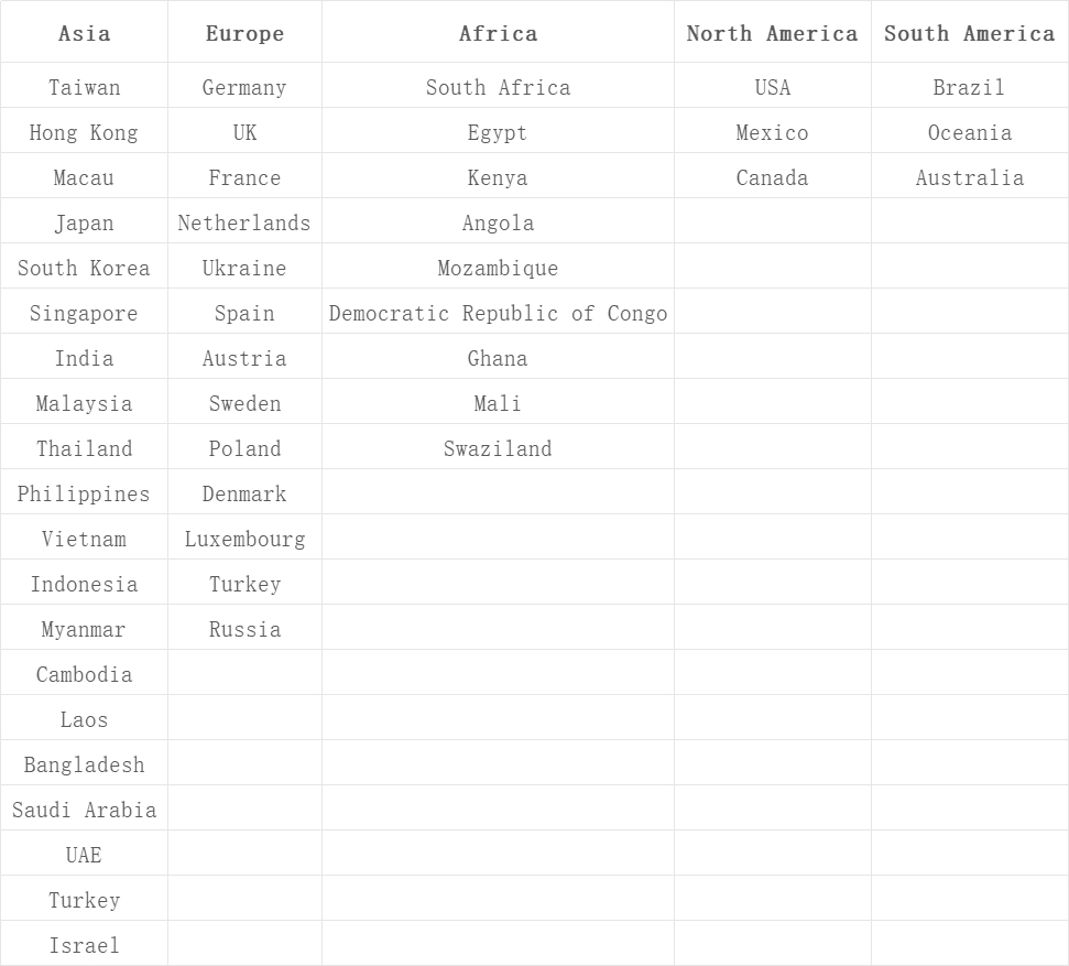 - If your required country/region is not listed in our standard offerings, please contact our online customer service