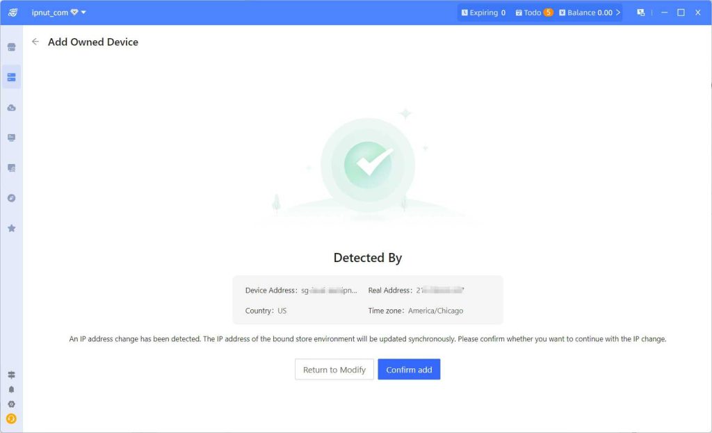 Your Zinia Browser is now successfully configured with IPNut’s proxy IP network environment. You can proceed to bind your e-commerce platform accounts.